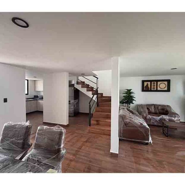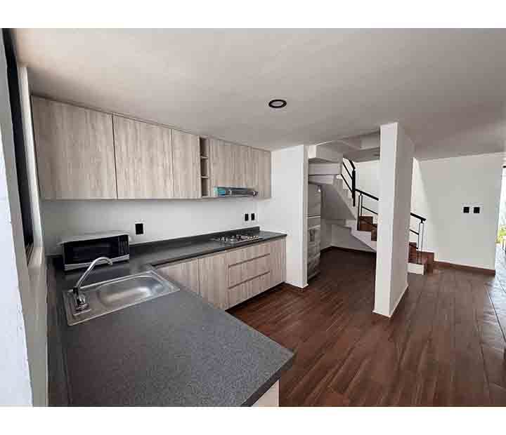 En su interior, la casa cuenta con sala, comedor y cocina integral, perfecta para preparar tus alimentos. Dispone de 2 baños y 1 medio baño, además de un amplio estudio o tercera habitación.